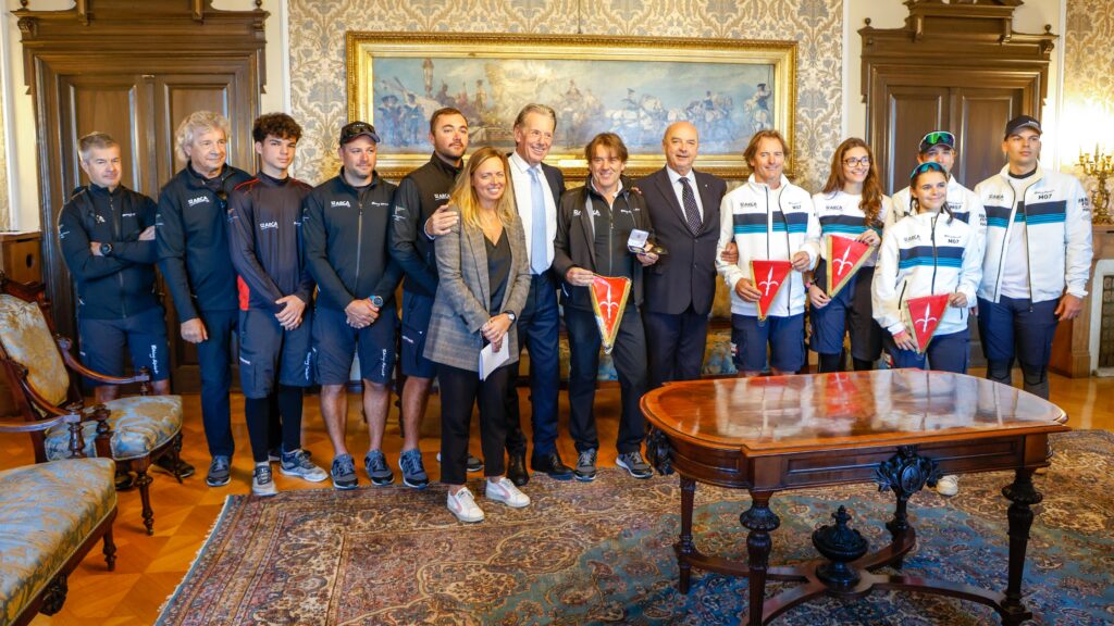 In a ceremony held in the historic Salotto Azzurro of Trieste’s City Hall, Mayor Roberto Dipiazza presented the Bronze Medal of the City of Trieste to the Fast and Furio Sailing Team, founded and led by veteran sailor Furio Benussi. The honor marks the twentieth anniversary of the team’s first victory at the Barcolana regatta, won in 2005 aboard Skandia – Trieste Provincia di.