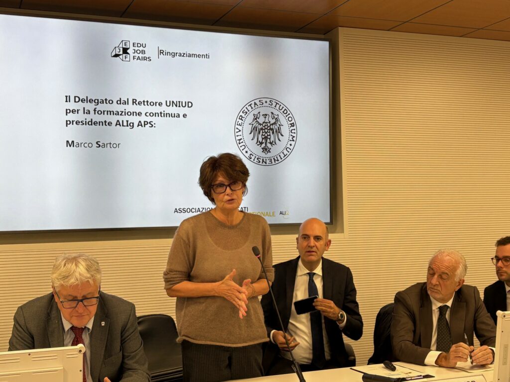 Rosolen spoke at the presentation of Edu Job Fairs, a new integrated platform for higher education and employment promotion organized by the Association of Graduates in Industrial Engineering (ALiG) with the support of the regional government. The initiative represents the evolution of the long-running Fiera del Lavoro FVG, transforming it into a broader, experimental event that unites for the first time the region’s two universities, four higher technical institutes (ITS), and more than 70 national and international companies.