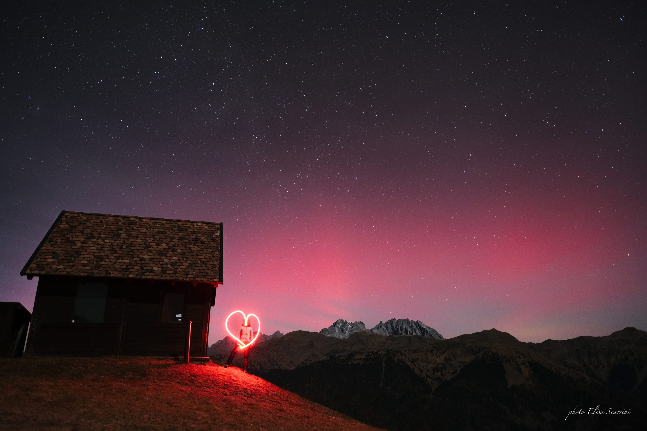 The skies over northeastern Italy lit up overnight between November 11 and 12, as a rare geomagnetic storm produced a spectacular aurora borealis visible across the Prealps and mountain regions.