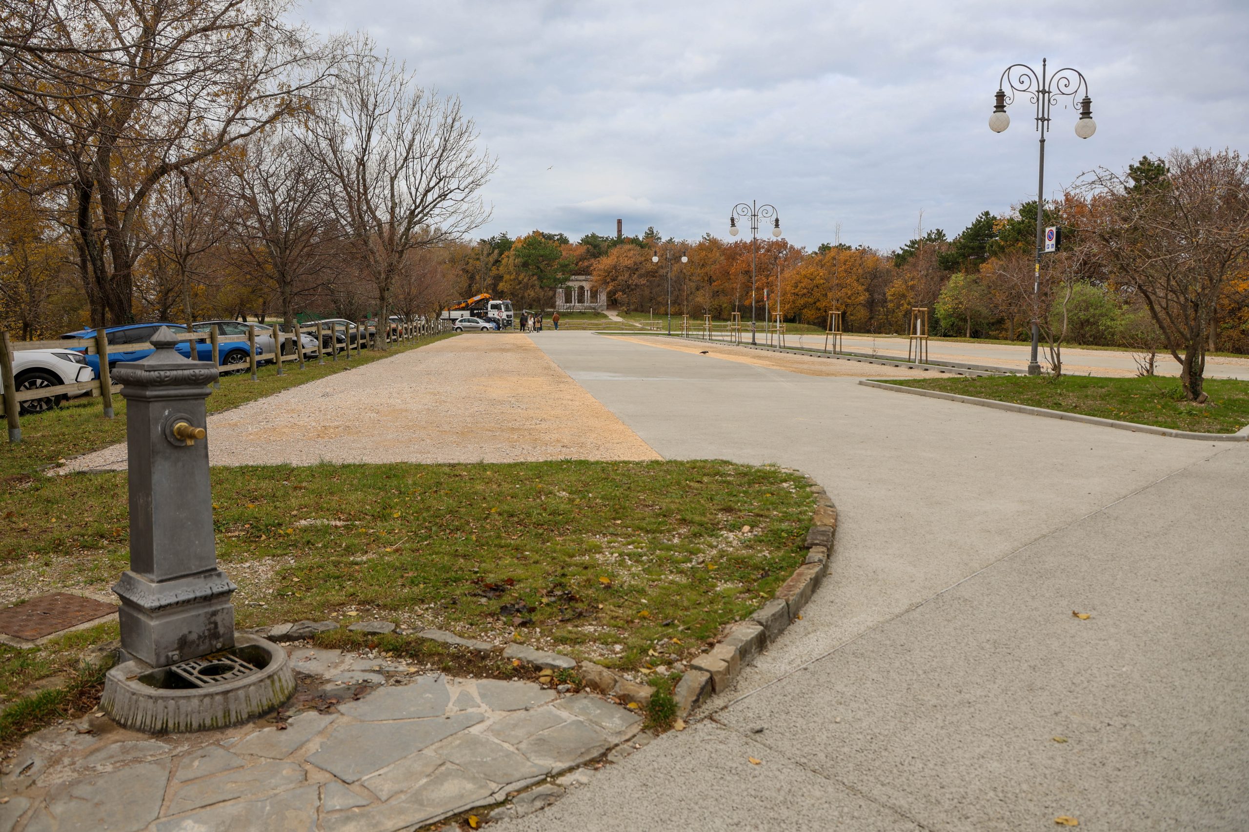 A newly renovated parking area adjacent to the Ferdinandeo, along via Carlo De Marchesetti, has officially opened, completing a series of urban infrastructure projects designed to improve water management and public green spaces.