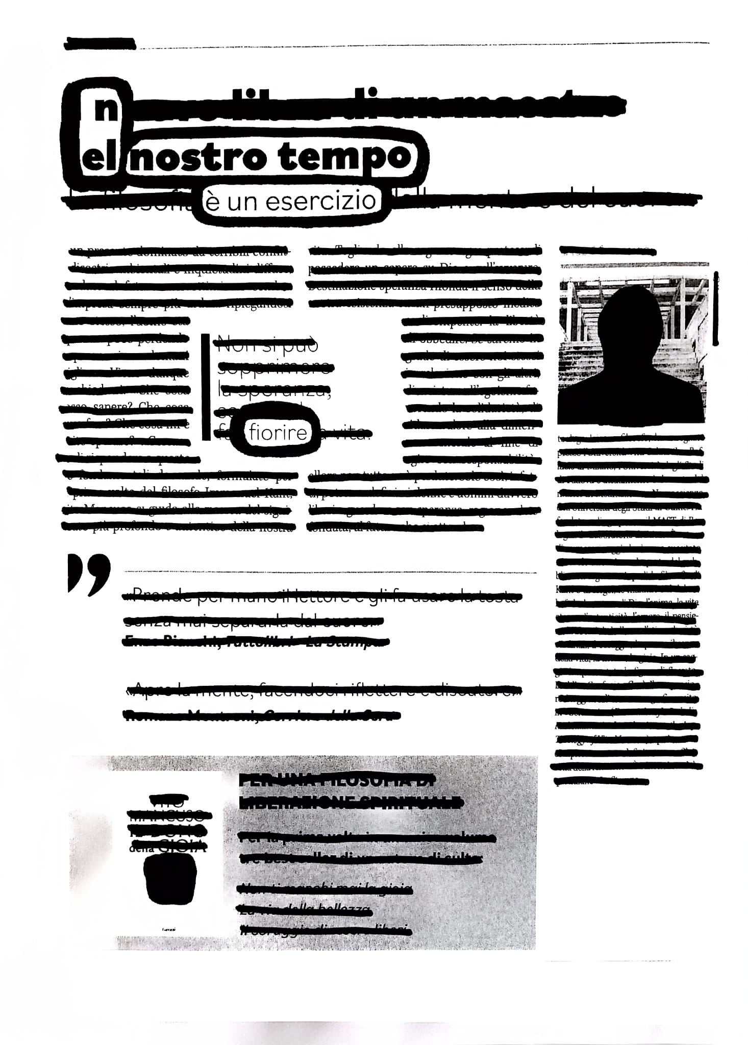 In conjunction with the exhibition Geniali Girotondi Grafici, currently on view at Associazione 18:18, a blackout poetry workshop will take place on Saturday, February 28, 2026, from 5 to 8 p.m., at the association’s headquarters in via Frausin 3B.